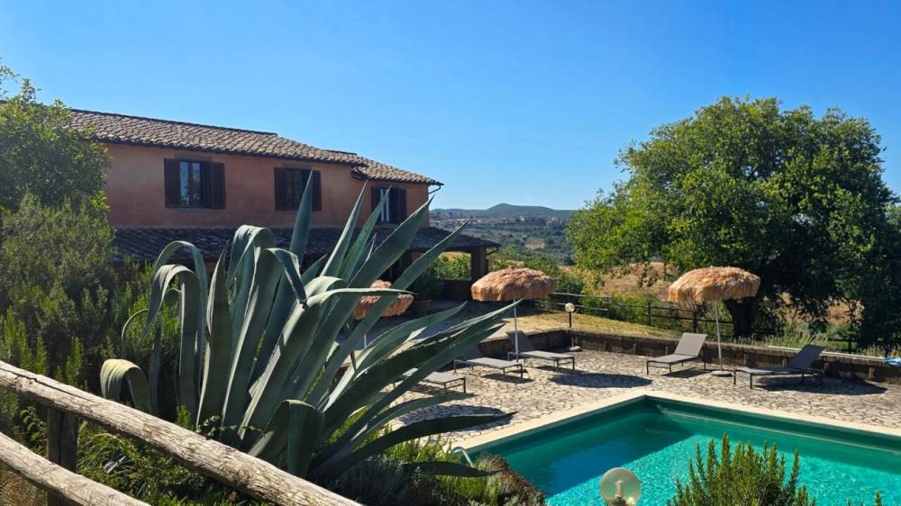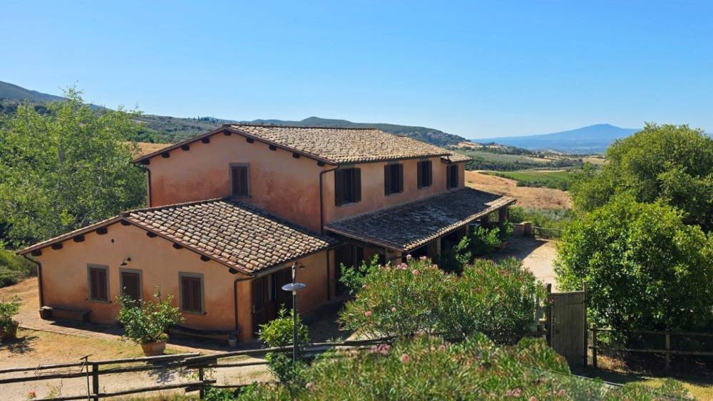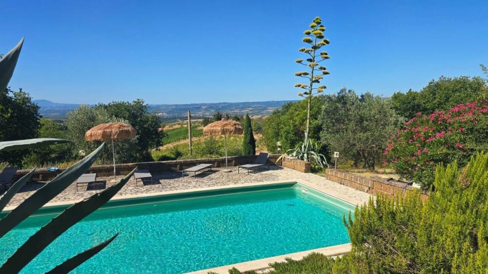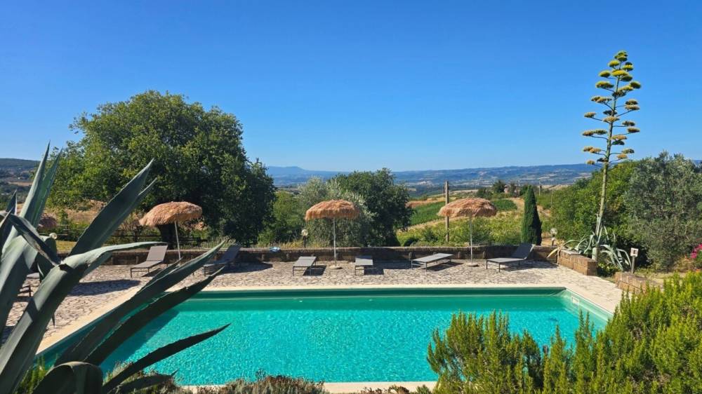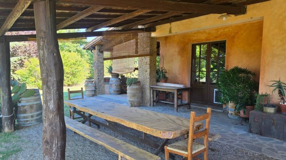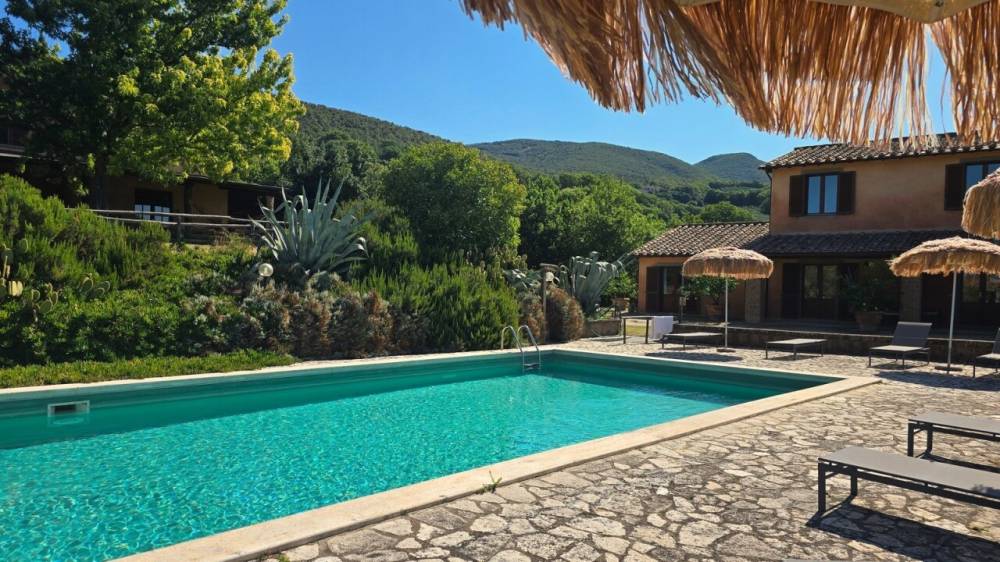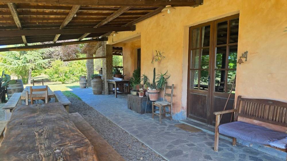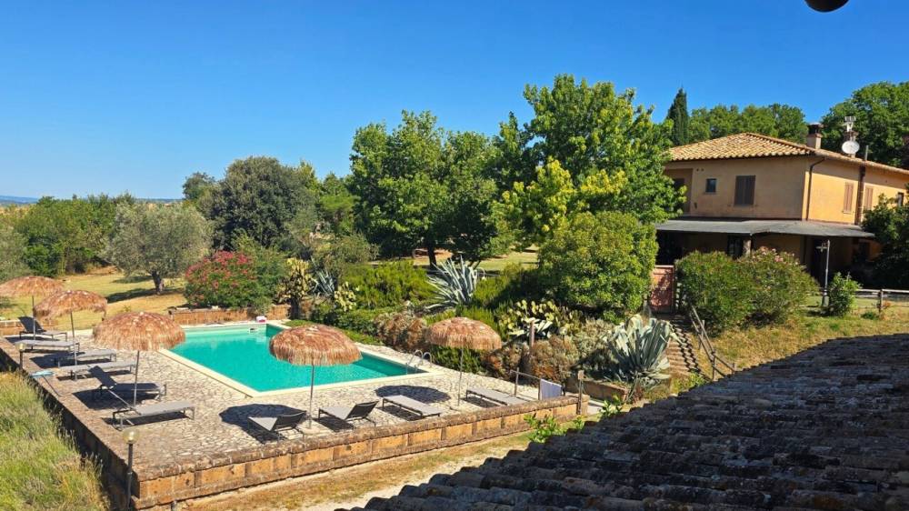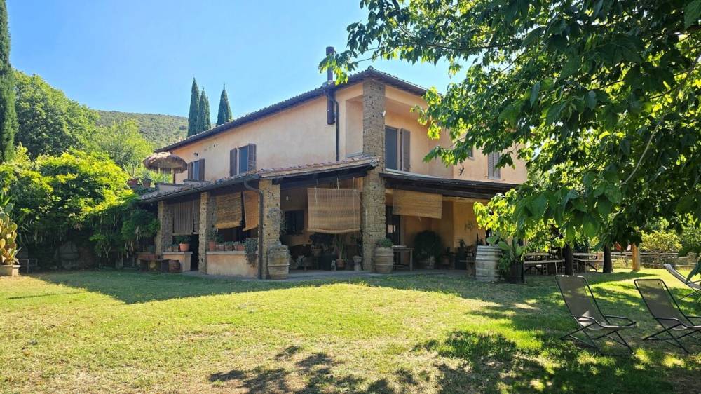 Tenuta I Due Casali In posizione panoramica e silenziosa, circondato solo dalla splendida campagna umbra, a metà strada tra Orvieto e Todi e circa 5km dai antichi borghi di Montecchio e Civitella del Lago, vendiamo una Tenuta con due casali, piscina, 3ha di vigneto, 100 piante di ulivo, seminativo e bosco. Possibilità di acquistare ulteriore terreno con vigne per un azienda agricola ricercata. Il primo casale (ad uso misto padronale e ricettivo/ degustazioni) 350mq +155mq portico. Piano terra: Cucina industriale, dispensa, 2 bagni, sala da pranzo di 150mq con un grande camino che funziona sia per il riscaldamento (del intero casale) sia per la cottura alla brace. Su tre lati del casale, con accesso dalla sala da pranzo, troviamo un porticato di 155mq per pranzi all'aperto. Primo piano: 6 camere matrimoniali, tutte con bagno en-suite, e una scala che conduce ad un piccolo attico. Ristrutturato con norme antisismiche nel 1994, possibilità di ampliare con 40mq. Il Secondo Casale (ad uso ricettivo) 430mq +70mq portico + 250mq seminterrato Piano terra: 1 appartamento trilocale (1 camera matrimoniale 1 camera singola 1 bagno 1 soggiorno con angolo cottura); 2 appartamenti bilocali (1 camera matrimoniale 1 bagno 1 soggiorno con angolo cottura); 3 camere matrimoniali con con bagni in camera, di cui uno per disabili, e altro locale addebito a magazzino. Primo piano: 2 appartamenti trilocali e 2 appartamenti bilocali. Seminterrato: magazzino e rimessa per attrezzi agricoli di 250mq Tutti gli appartamenti hanno accesso indipendente dal esterno, spazio esterno con vista panoramica o vista sulla piscina. Aria condizionata, infissi in rovere con doppiovetro. Costruito nel 2005, possibilità di ampliare 80mq. Esterno I casali sono circondati da circa 1 ha di giardino recintato con 2 cancelli automatici con on impianto di videosorveglianza, area parcheggi, una tartufaia di nero estivo, un'ampia area verde ben curato con prato verde, un gazebo di 4x5m, vari alberi di 40anni e oltre (cipressi, querce, olmi, olivi, aceri e alberi da frutta). L'intera area è servita da illuminazione e da otto fontane per l'irrigazione, e di fronte ai due casali troviamo la piscina (12x6 m, altezza 1,50 m) con un ampio solarium. Nel seminterrato c'è un locale tecnico e magazzino di circa 80 m². Location Posizione silenziosa e panoramica con splendidi tramonti. Accesso comodo e facilmente raggiungibile con una breve strada bianca per arrivare all'asfalto di circa 400 m. Strada ben tenuta e percorribile anche da grandi pullman da 60 posti (dato che la struttura lavora molto con clientela internazionale). Alcune Distanze: Servizi 4,5 km , Orvieto 20km, Todi 25km, Roma 103km, Autostrada 17 km, Stazione FS 19 km, Ospedale 21 Km , Aeroporto di Roma 142 km, Utenze e impianti: Acqua comunale con addolcitori e serbatoio di accumulo di riserva per ogni casale; 2 Pozzi a vena superficiale, 8 fontanelle; 8 Panelli solari per l'acqua calda; Riscaldamento autonomo GPL (con serbatoio GPL separati per ogni casale) Il casale padronale è inoltre dotato di riscaldamento a legna; Elettricità da rete con 40 KW impegnati; Aria condizionata; Una fossa settica Imhoff per ogni casale. Mq commerciali: 780 abitativo + 330mq magazzini/rimessa 5 Appartamenti + 9 Camere matrimoniali con bagno en-suite, Cucina professionale, Sala pranzo, 220mq di Porticato, Piscina 12x6, Rimessa / Magazzini 320mq, Volume inutilizzato 120 m², Terreno 4,4 ha con la possibilità di acquistarne altro.