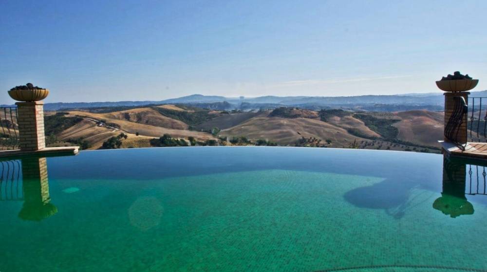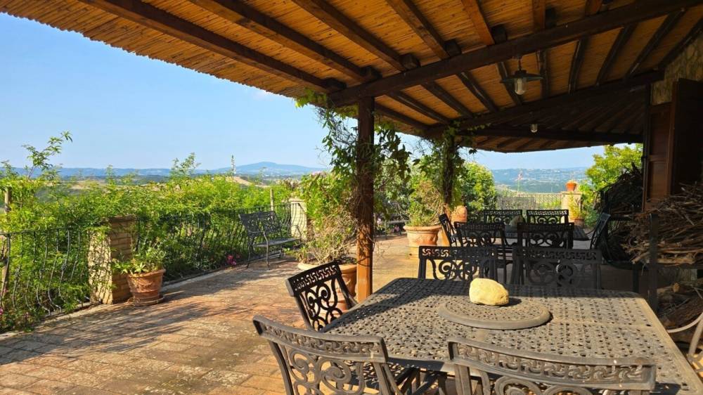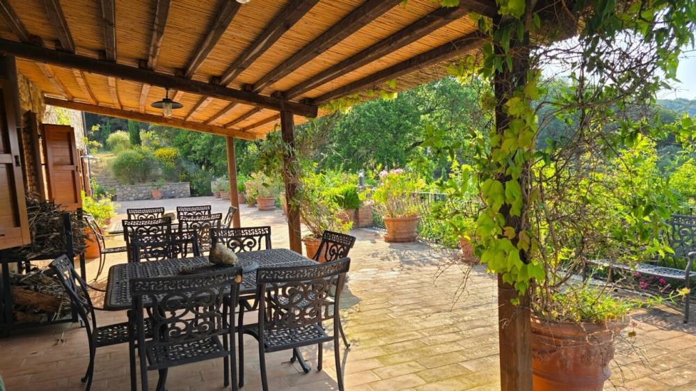 Tenuta prestigiosa di 40 ettari con ulivi, vigneti, mandorli, bosco e un casale spettacolare in pietra di 600 metri quadrati commerciali, piscina a sfioro riscaldata e vista mozzafiato sulla campagna circostante. Posizione strategica a soli 5 minuti da Allerona e 20 minuti da Orvieto. Al casale si accede tramite un viale di cipressi con due cancelli elettrici tra colonne in pietra coronate da statue in marmo. La casa sorge in posizione dominante, circondata da ampie terrazze, larghi pergolati e portici, da splendidi giardini (in parte pianeggianti e in parte terrazzati) e di fronte al casale si trova una zona relax con con piscina a sfioro e vasca idromassaggio con vista panoramica. Il casale, di circa 460m² distribuiti su 2 livelli, è stato demolito e ricostruito nel 2010 nel rispetto delle normative antisismiche, ma mantenendo lo stile classico e utilizzando i materiali originali del vecchio casale. Al Piano Terra troviamo un'ampia cucina con zona pranzo e due ampie porte finestre che conducono ad un ampio pergolato e alla zona piscina. Proseguendo troviamo una zona salotto, un bagno, una lavanderia, una dispensa e un soggiorno a doppia altezza con camino artigianale in marmo e accesso alla terrazza panoramica. Dal soggiorno, un corridoio conduce a uno studio con camino e alla Suite Padronale con cabina armadio, spogliatoio con una piccola zona palestra, bagno en-suite con cabina doccia e bagno turco, vasca idromassaggio con cromoterapia. Al Primo Piano si accede dal soggiorno tramite una scala elicoidale fatta a mano con gradini in castagno che ci conduce al soppalco con biblioteca e la balconata, in seguito al corridoio che collega tre camere matrimoniali, di cui una con loggia terrazzata con vista mozzafiato, e un ampio bagno in marmo con cabina doccia e vasca. (Possibilità di realizzare ulteriori bagni) Esterno Davanti alla cucina troviamo un ampio pergolato e un portico, e di fronte, una ampia zona relax con vasca idromassaggio Jacuzzi, Solarium, Gazebo, e una Piscina a sfioro riscaldata , il tutto con vista mozzafiato... L'intero casale è circondato da ampie terrazze in cotto larghe 5-7 metri, pergolati e porticati. Una fontana in marmo di Carrara all'ingresso circondata da lavanda e rosmarino, insieme a grandi melograni e rose. Numerose ampie aree a prato/giardino ospitano innumerevoli aiuole di rose, peonie, ortensie, tulipani, lavanda, rosmarino e molte altre varietà. Terreno 40 ha totali con 2500 ulivi, 500 mandorli e un vigneto di uve bianche (Chardonnay, Grechetto, Trebbiano e Moscato) e rosse (Merlot e Syrah). Vino etichettato. Cantine & Annessi Adiacente alla piscina, al piano seminterrato, si trovano un locale tecnico molto ben organizzato e una cantina con spazio dedicato alle degustazioni, mentre, adiacenti al vigneto, troviamo due capannoni per trattori e attrezzature agricole. Possibilità di edificare ulteriori 70 mq (Esiste un progetto approvato per un'enoteca e un garage). Servizi e utenze La tenuta è fornita da energia elettrica, riscaldamento a GPL con impianto a pavimento, aria condizionata in tutte le stanze che si convertono anche in calore; pannello solare di supporto per acqua calda , 4 pozzi con depuratore, irrigazione su tutto il giardino. Locali tecnici moderni con impianti a norma ed efficienti. Cancelli elettrificati e telecomandati con codice di accesso. Piscina a sfioro e vasca idromassaggio Jacuzzi. Attrezzi e finiture Casale in pietra con travi di castagno e pianelle in terracotta a vista, pavimenti in legno d'ulivo nelle camere da letto e cotto fatto a mano per gli altri ambienti. Aria condizionata e riscaldamento a pavimento sono presenti in tutta la casa. Finestre e porte con doppi vetri sono in castagno massello intarsiato. L'ampia cucina Ernesto Media è dotata di fornelli a gas Vulcan/Wolff, forni, grill, secondo forno elettrico, lavastoviglie, microonde, cantinetta per vino e due frigoriferi/congelatori con fabbricatori di ghiaccio. È inoltre presente una dispensa con congelatore e funzionali mobili in castagno, così come una zona lavanderia con lavatrice e asciugatrice. Alcune distanze: Servizi primari 3km; Allerona scalo 9km; Orvieto 17km;Città della Pieve 34km; Todi 53km; Roma 128km; Autostrada 21km; Stazione FS 20km Potenzialità Potenziale per una tenuta residenziale/azienda agricola o un agriturismo con spettacolare terreno circostante che garantisce la privacy. Gli uliveti producono da 15 a 40 tonnellate di olive, a seconda della stagione, sono presenti anche 500 mandorli adatti all'apicoltura (miele di mandorle) e alla produzione di frutta secca, un vigneto privato con uva bianca e rossa che produce diverse migliaia di bottiglie etichettate all'anno. Possibili ulteriori locali agricoli/annessi, qualora l'imprenditore agricolo ne soddisfi i requisiti. Possibilità di acquistare ulteriori 60 ettari con uliveto, bosco, tartufaia e casali.