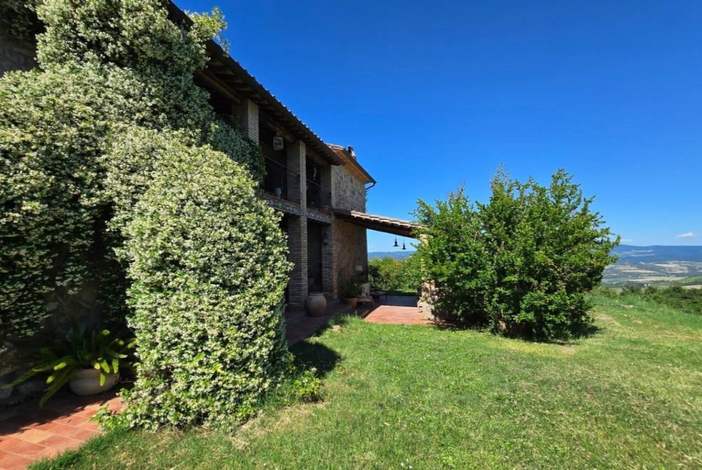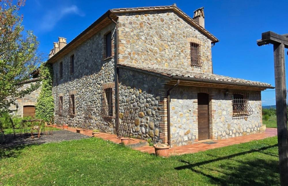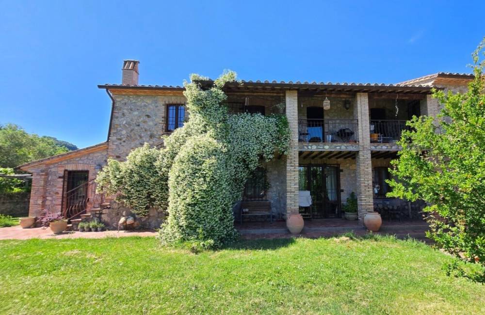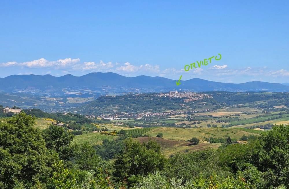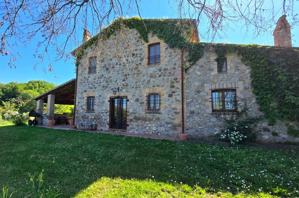 Podere vicino Orvieto In posizione riservata con vista panoramica sulla splendida campagna umbra e la silhouette di Orvieto sullo sfondo, vendiamo una bellissima proprietà composta da un casale di 435 mq, una dependance di 90 mq, una piscina di circa 70 mq, due ampie tettoie per auto e attrezzi, un'antica grotta e 24 ettari circa di terreno circostanti suddivisi tra giardino, bosco, seminativo, vigneto ed uliveto. Dal cancello automatico, con colonne in pietra, si apre un lungo viale che conduce al casale padronale ed alla dependance, mentre dal perimetro recintato si aprono vari percorsi naturalistici attraverso il bosco confinante di proprietà. Il casale principale è stato completamente ristrutturato nel 2008 mantenendo lo stile originale con l'utilizzo dei materiali tradizionali di alta qualità come pavimenti in cotto, porte scorrevoli in legno, finestre in legno con doppi vetri e porte in legno massello tipo mercantile. Al primo piano troviamo la casa padronale composta da un ampio salone con termo-camino e due vetrate panoramiche, una ampia cucina in muratura, un studio con stufa in maiolica ed un bagno. Dal lato opposto del salone troviamo la zona notte con due camere ed un bagno. Al piano terra troviamo tre appartamenti comunicanti ma ciascuno con ingresso indipendente: il primo composto da soggiorno con angolo cottura e stufa in maiolica, bagno e camera da letto; il secondo si compone di ampio salone con termo-camino, 2 bagni, camera da letto, sala lettura/biblioteca e cucina; ed infine il terzo appartamento è composto da un ampio soggiorno con angolo cottura, camera da letto soppalcata, e bagno. Completa il piano terra due portici con vista sul paesaggio incantevole. Al piano seminterrato troviamo un garage ed una cantina attrezzata per la produzione del vino. Dependance A circa 100m troviamo una dependance elegante di circa 90mq, anch'essa restaurata, composta da soggiorno con angolo cottura, camino e stufa a legna, bagno, camera da letto con stufa a legna, magazzino e portico. Completano la proprietà un locale tecnico, un magazzino, un ampio patio arredato, una piscina di 72 mq, due ampie tettoie per auto e attrezzi, un’antica grotta restaurata. Utenze Acqua comunale, riscaldamento alimentato a GPL e/o a legna, 2 termo-camini, 5 stufe a legna , 2 pozzi, impianto di irrigazione per tutto il giardino, cancello elettrico con telecomando, WiFi, parabola satellitare e prestigioso impianto professionale video/audio HiFi marca “Bang & Olufsen” presente in ogni appartamento. Terreno I 24 ettari di terreno, suddivisi tra bosco (circa 16 ettari), giardini e seminativo, potrebbero essere utilizzati anche per scopi agricoli grazie ai 120 ulivi, che forniscono 700 chilogrammi di olive all'anno, al vigneto che produce ogni anno diverse centinaia di bottiglie etichettate. Il vasto spazio esterno è completamente recintato e illuminazione esterna nel giardino consente la piena fruibilità della struttura anche nelle ore notturne. Potenzialità La proprietà è predisposta per attività ricettive B&B e di agriturismo, inoltre c'è la possibilità di suddividere il fabbricato in più unità abitative ma rappresenta anche la soluzione perfetta sia come residenza principale che come casa vacanza e/o agriturismo. Posizione Posizione riservata, immersa nella quiete della campagna ma facilmente raggiungibile dalla strada provinciale e a soli 20min da Orvieto e 15min dall'autostrada A1 Roma-Firenze (entrambe le città raggiungibili in 90min), 2km da Castel Viscardo, 1h20min dall'Aeroporto di Perugia e 20min dalla Stazione FS di Orvieto.
