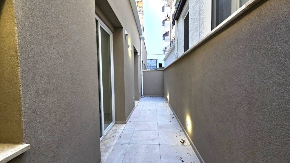 SAN BENEDETTO DEL TRONTO - Nel cuore di San Benedetto del Tronto in piena isola pedonale, appartamento con corte e terrazza, nuovo e lussuoso in classe energetica A3, appena ultimato con una ristrutturazione completa e provvisto d'impiantistica di ultima generazione. L'immobile unico nel suo genere è ubicato in posizione strategica, in un contesto di massima privacy e tranquillità e allo stesso tempo sull'Isola Pedonale. L'unità abitativa è posta al piano terra ed ha una superficie complessiva di circa 80 mq divisa in ingresso su soggiorno con angolo cottura, disimpegno, due camere di cui una matrimoniale e una singola comoda, due bagni con doccia di cui uno a servizio della camera matrimoniale e una comoda corte esterna di circa 14 mq, anch'essa rifinita e curata nell'illuminazione. Con elegante scalinata posizionata nella zona giorno si sale accedendo ad un vano tecnico (fornito di allacci e scarichi) e con uscita su di un'esclusiva terrazza di mq 51 circa. Completa la proprietà una comodissima cantina. L'immobile ultimato con finiture di pregio e impiantistica all'avanguardia è fornito di riscaldamento e raffrescamento a pompa di calore con impianto programmabile da remoto, ampi infissi in pvc, sottopavimentazione areata, videocitofono e impianto di ventilazione meccanizzata. Le sue caratteristiche uniche e la sua posizione impareggiabile lo rende un ottimo investimento sia ad uso residenziale che come pied-à-terre esclusivo nel cuore della città. Possibilità di metratura inferiore. Codice di riferimento 1487. Agenzia Immobiliare Maiora/Invest.
