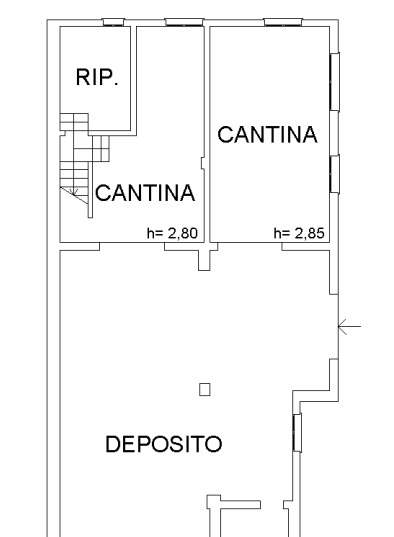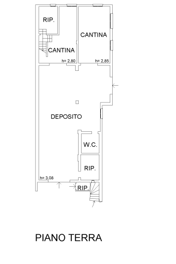 Unità che si sviluppa su tre livelli e composta al piano terra da tre cantine, deposito e wc.