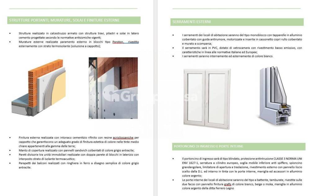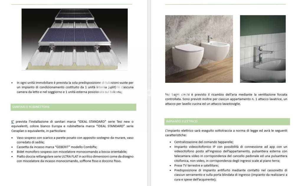 La soluzione è dotata di riscaldamento a pavimento, tapparelle in alluminio motorizzate e pannelli fotovoltaici per le parti comuni.