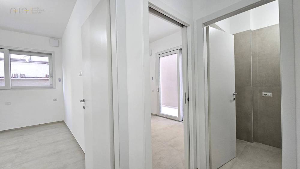 Nel cuore di San Benedetto del Tronto in piena isola pedonale, appartamento con corte e terrazza, nuovo e lussuoso in classe energetica A3, appena ultimato con una ristrutturazione completa e provvisto d'impiantistica di ultima generazione. L'immobile unico nel suo genere è ubicato in posizione strategica, in un contesto di massima privacy e tranquillità e allo stesso tempo sull'Isola Pedonale. L'unità abitativa è posta al piano terra ed ha una superficie complessiva di circa 81 mq divisa in ingresso su soggiorno con angolo cottura, disimpegno, due camere di cui una matrimoniale e una doppia comoda, due bagni con doccia e una comoda corte esterna con uscita da ogni vano di circa 30 mq, anch'essa rifinita e curata nell'illuminazione. Con elegante scalinata posizionata nella zona giorno si sale accedendo ad un vano tecnico (fornito di allacci e scarichi) e con uscita su di un'esclusiva terrazza di mq 63 circa in parte fornita di pergolato. Completa la proprietà una comodissima cantina. L'immobile ultimato con finiture di pregio e impiantistica all'avanguardia è fornito di riscaldamento e raffrescamento a pompa di calore con impianto programmabile da remoto, ampi infissi in pvc, sottopavimentazione areata, videocitofono e impianto di ventilazione meccanizzata. Le sue caratteristiche uniche e la sua posizione impareggiabile lo rende un ottimo investimento sia ad uso residenziale che come pied-à-terre esclusivo nel cuore della città. Possibilità di metratura inferiore.