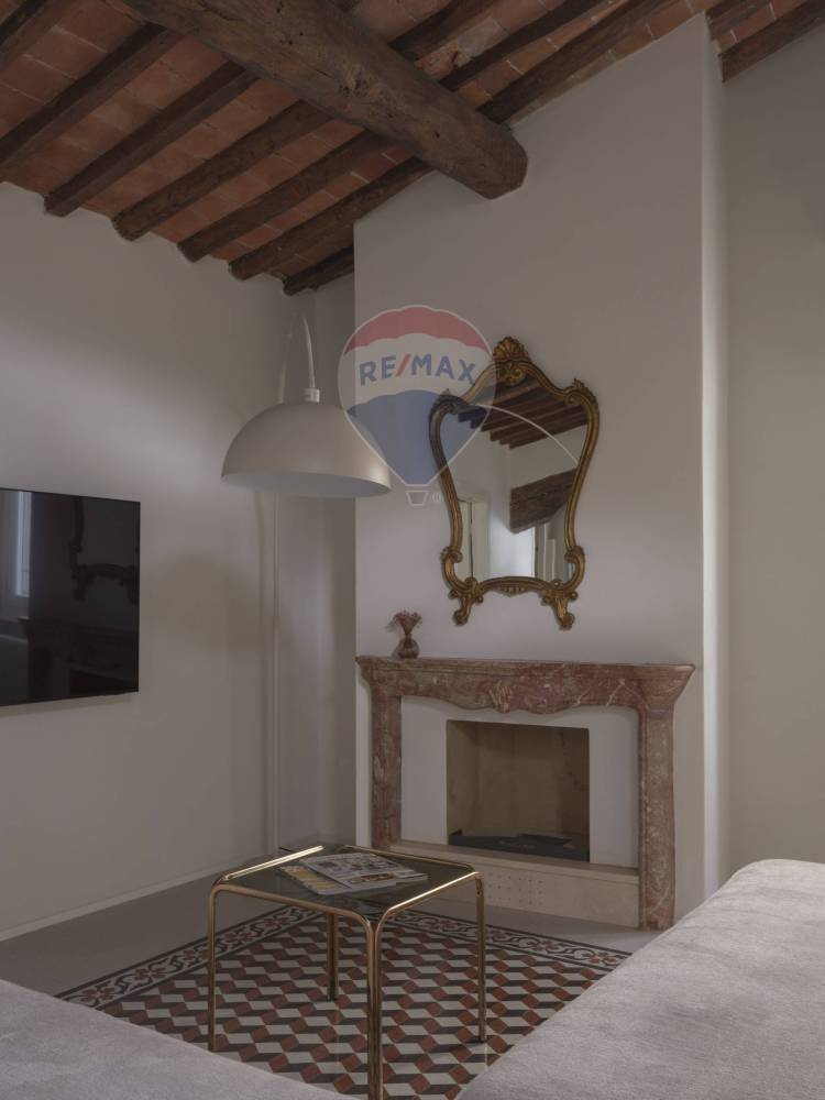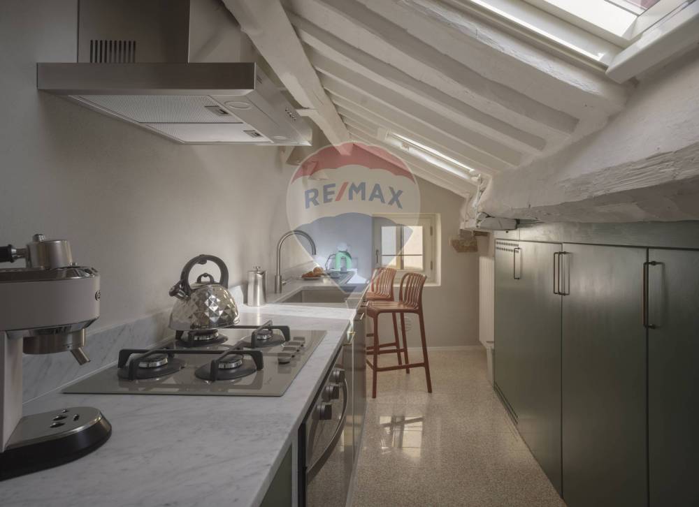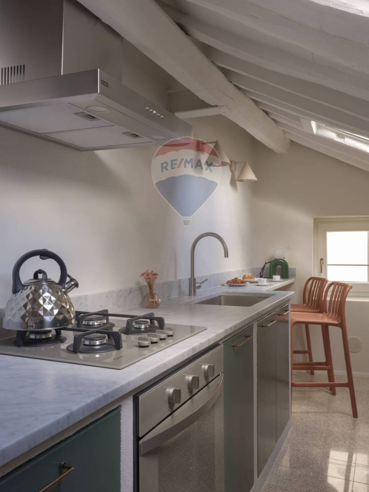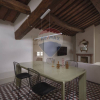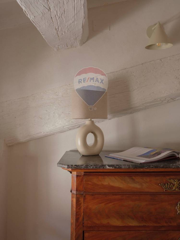 Tutti gli spazi sono valorizzati e ben sfruttati; il soggiorno è accogliente, con un grande divano che può diventare il terzo letto matrimoniale, e spazio per pranzi in compagnia, la cucina è arredata con mobili su misura che nascondono anche la lavatrice e una dispensa capiente, spazioso anche il ripostiglio e le due camere matrimoniali. Il bagno merita una particolare attenzione, resine preziose lo rendono attuale pur integrandosi bene in un edificio antico; ora cè una grande doccia ma esiste la predisposizione per aggiungere una vasca free-standing