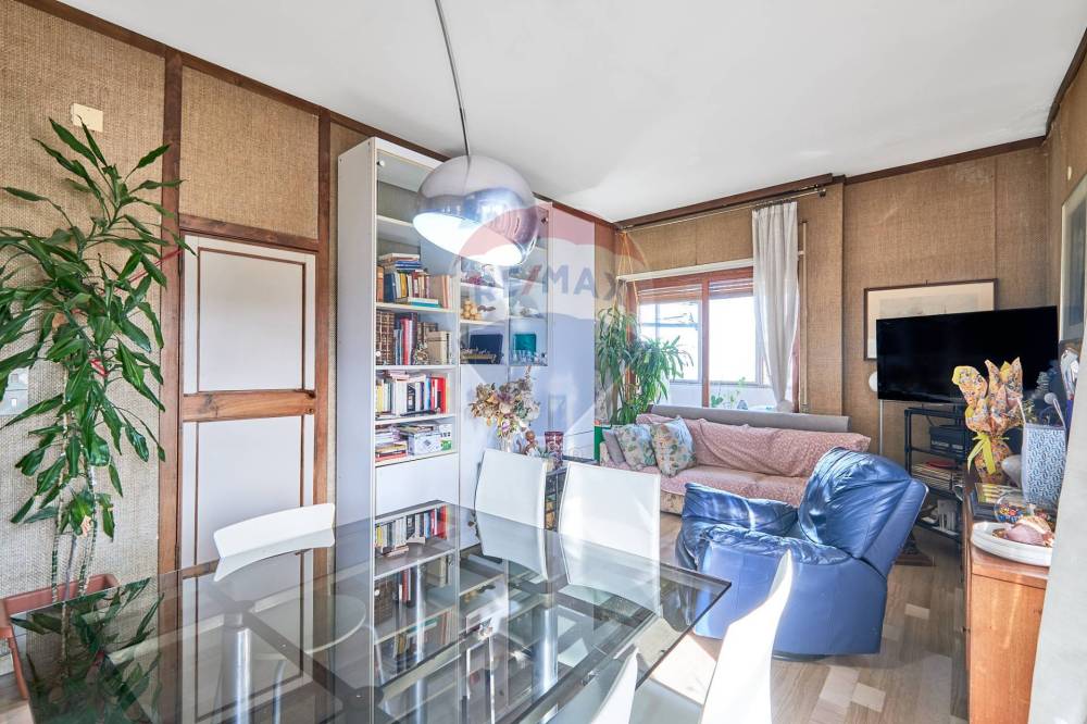 Il cuore della casa è costituito da un ampio Soggiorno di 23 mq (s.u.) con annesso area balconata e un Cucinino, a cui è possibile accedere sia dalla sala che dal disimpegno: la cucina può rimanere tradizionalmente separata dalla sala oppure (considerando lassenza di muri portanti) è possibile realizzare un unico ambiente conviviale (sala, dis. e cucina) con layout aperto. In caso di esigenza, la cucina può essere convertita in secondo bagno.