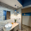 Bagno moderno con sanitari sospesi e ampio box doccia.