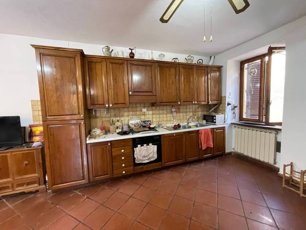 Al piano terra si trova una spaziosa cucina abitabile con camino, ideale per creare un ambiente accogliente e conviviale, un soggiorno luminoso e un bagno di servizio.