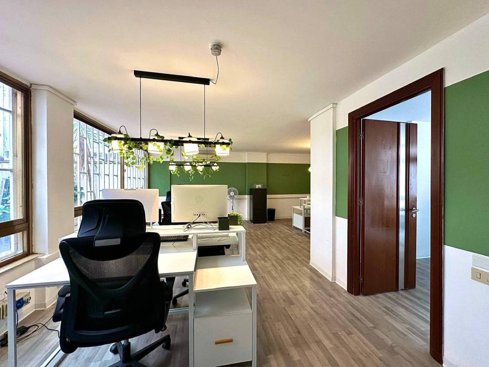 L’immobile, completamente ristrutturato e finemente arredato, si distingue per la qualità degli ambienti e per l’atmosfera sobria e professionale che lo caratterizza. La distribuzione interna comprende tre vani e mezzo attualmente organizzati in 10 postazioni operative, con una sala d’attesa esterna in comproprietà (50%) con lo studio attiguo.