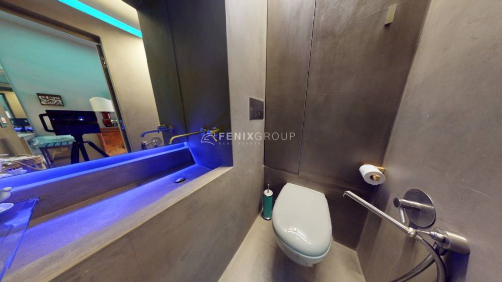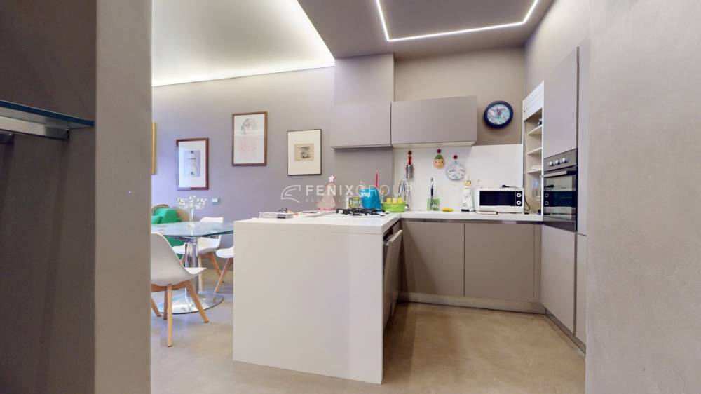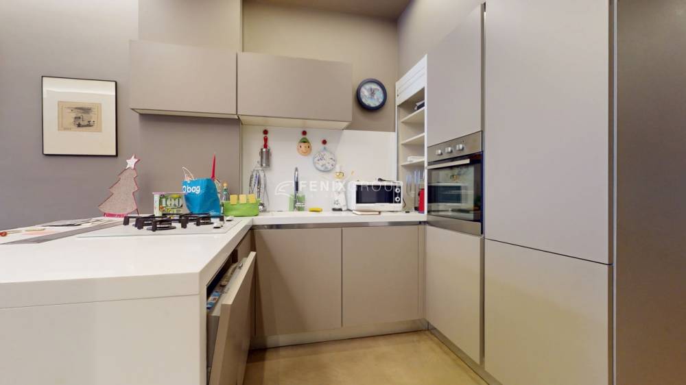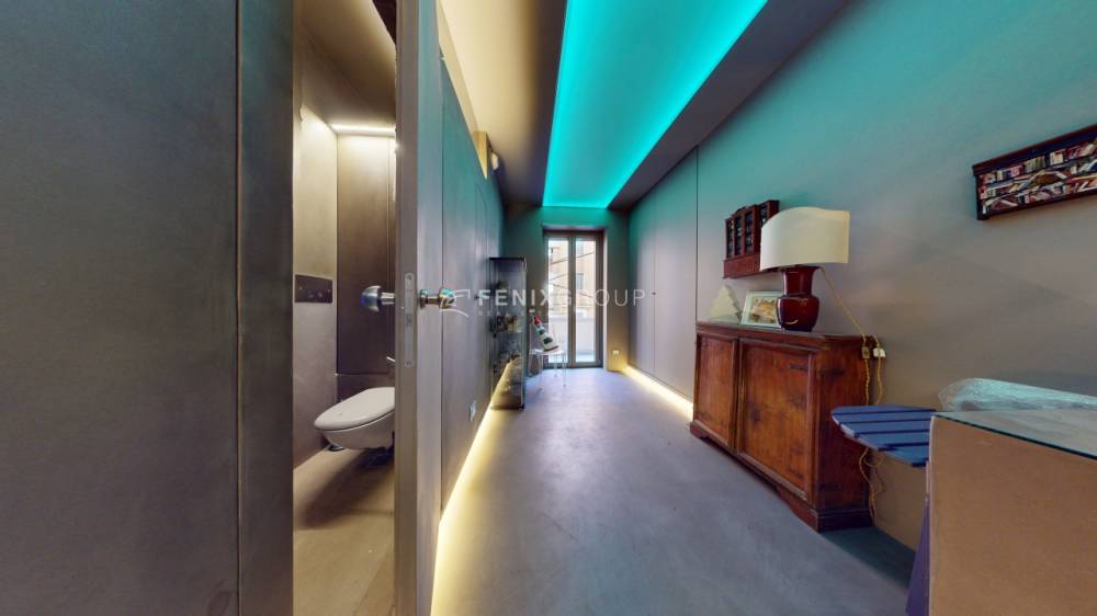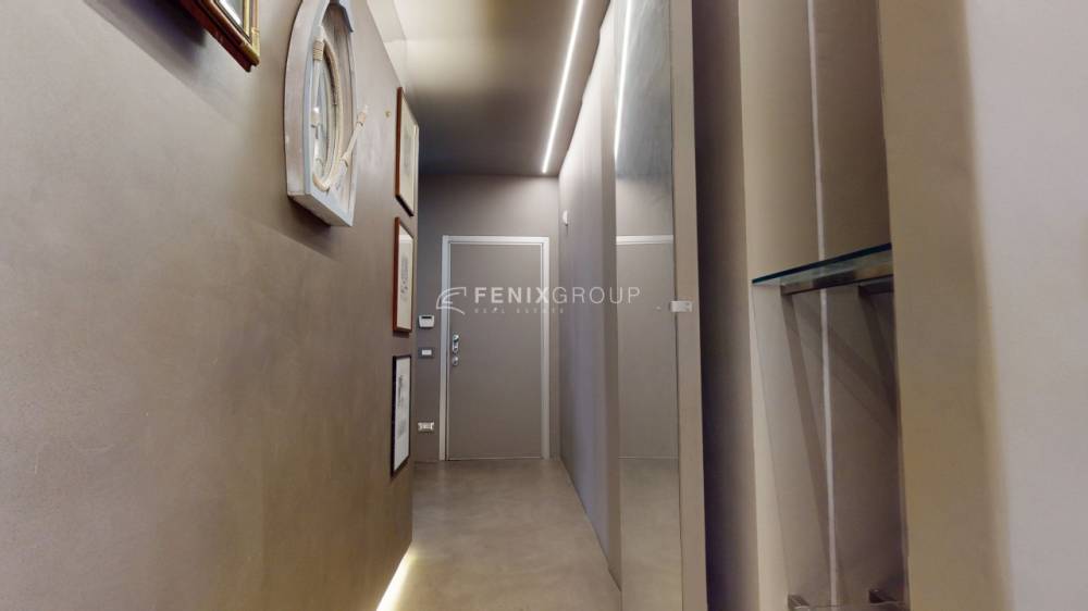 L’appartamento si distingue per la doppia esposizione e per le finiture di pregio: pavimentazione in microcemento in tutta la casa, ad eccezione di una parte del soggiorno e della camera da letto dove è stato posato il parquet, impianto di aria condizionata canalizzata, riscaldamento a pavimento, infissi con doppi vetri e apertura vasistas, impianto d’allarme e portineria attiva fino al venerdì. Le spese condominiali ammontano a circa 2.500 euro all’anno. Completano la proprietà una cantina di pe