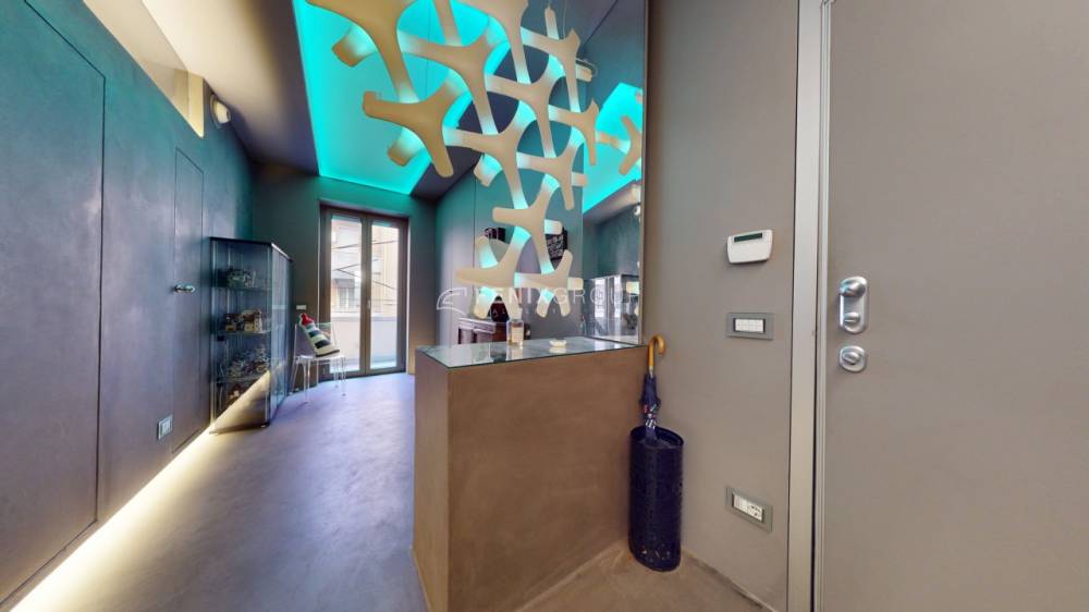 FenixGroup propone in vendita un appartamento di 80 mq situato al secondo piano di uno stabile civile di sette piani con ascensore, in Galleria Buenos Aires 7, nel cuore di Milano. L’ingresso si apre su una prima stanza luminosa grazie alla porta finestra che conduce al balcone con affaccio interno, esposto a est. Questo ambiente, utilizzato come zona di accoglienza, è valorizzato da un’elegante armadiatura a muro che nasconde una lavanderia e un piccolo bagno di servizio. Una parete specchiata mobile e apribile conduce e al tempo stesso nasconde il resto della casa.