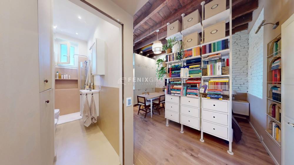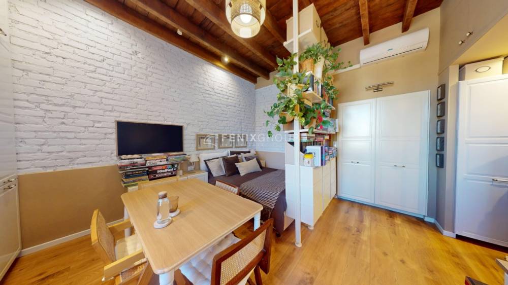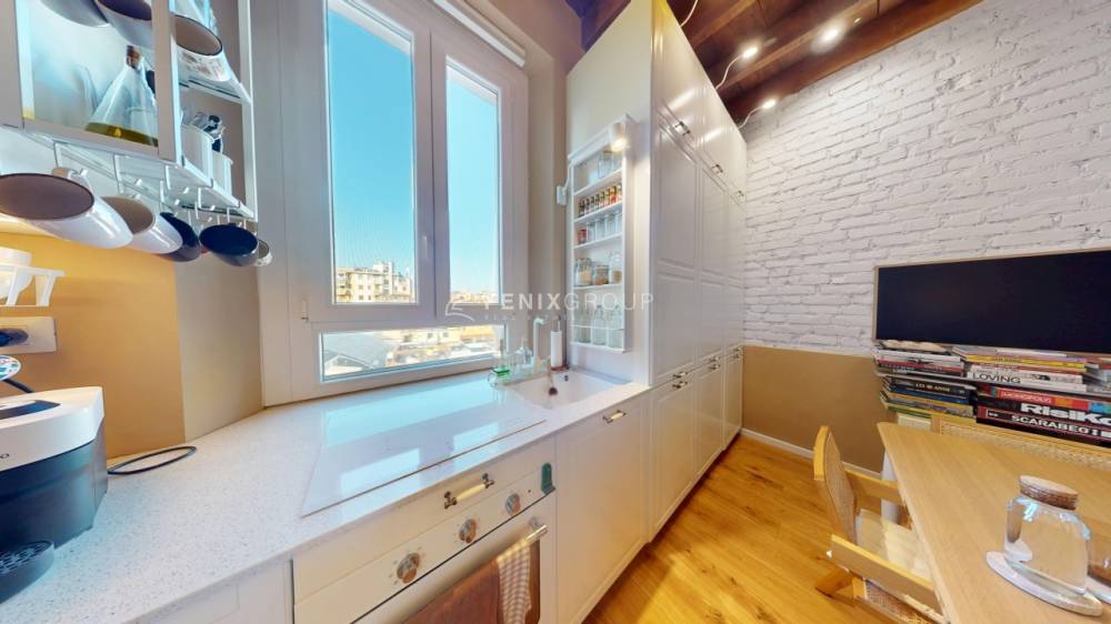Tra le dotazioni troviamo impianto di riscaldamento e climatizzazione autonomi (aria calda/fredda), infissi in doppio vetro con zanzariere, ripostiglio in quota e soffitti alti 3,30 m con travi a vista.