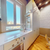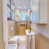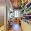 Dispone di una cucina moderna a vista con piano a induzione, top in quarzo ed elettrodomestici di ultima generazione (forno, frigorifero, lavastoviglie), zona pranzo con tavolo in legno, area notte separata da libreria con letto matrimoniale contenitore, e bagno finestrato completo di box doccia e lavatrice.