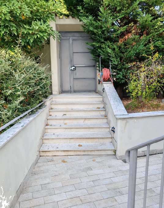 Al piano seminterrato con buona parte di esso interrato ad uso cantina e un una garage e al piano terra con annessa corte esclusiva.
