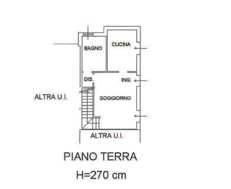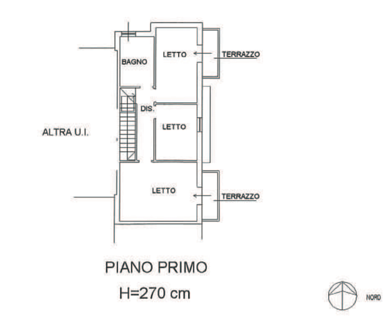 l' abitazione si sviluppa ai piani terra e primo ed è cosi composta: al piano terra troviamo un ingresso, un soggiorno, una cucina e un bagno, al piano primo troviamo tre camere da letto, due terrazzini e un bagno. L'area cortiliva ha una superficie di 560 mq.