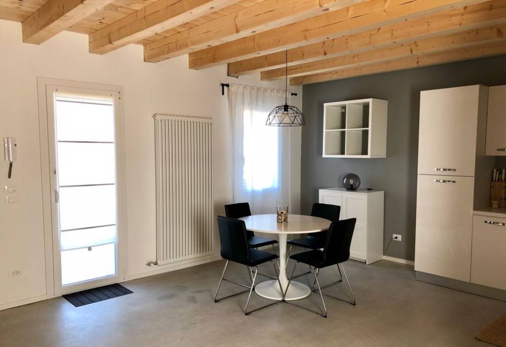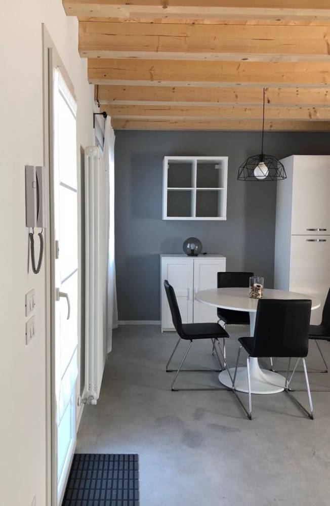 Treviso in zona Santa Maria del Rovere delizioso Mini Appartamento nuovo, elegante pieno di charme. L'appartamento è completamente arredato e dotato di tutto, stoviglie, pentole, aria condizionata ed è tutto semi-nuovo. L'immobile è a piano terra e si sviluppa su due livelli. A piano terra troviamo un bel soggiorno ampio con angolo cottura, un posto auto scoperto ed una cantina-magazzino, salendo le scale si entra all'interno di una camera matrimoniale ampia con bagno dotato di box doccia.