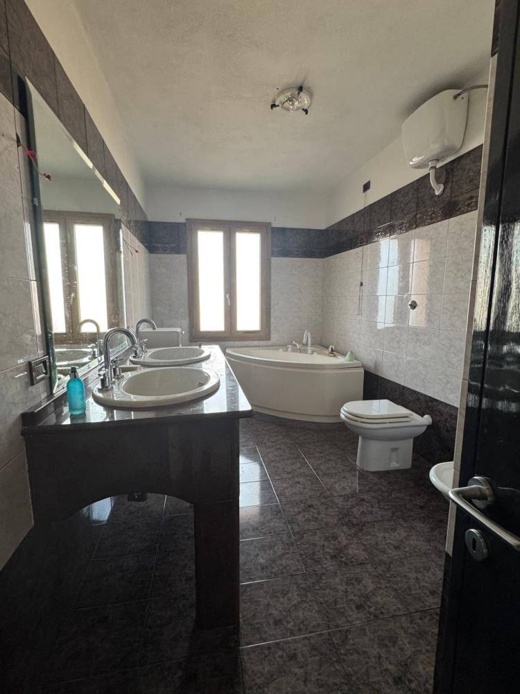 Bagno per la zona giorno completo di una raffinata vasca angolare e rivestimenti di pregio