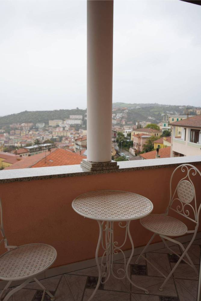 Camera studio, un ambiente estremamente luminoso con accesso a una grande veranda vivibile coperta che offre un'ampia e suggestiva veduta sulla città.