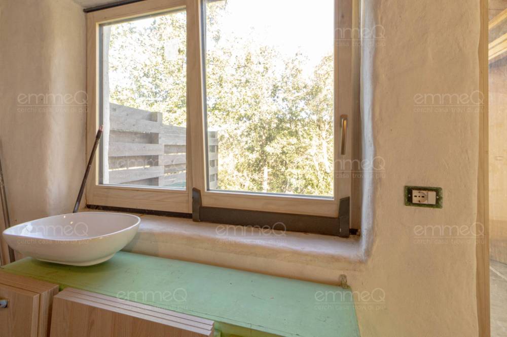 La casa presenta tre uscite esterne, tetto in legno e finiture particolari, con muri realizzati in balle di paglia intonacate, che garantiscono ottimo isolamento termico e sostenibilità ambientale. Le fondamenta sono realizzate con struttura ciclopica in pietra e gabbioni ancorati.