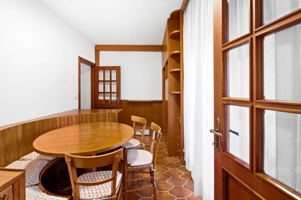 La zona giorno è completata da una cucina abitabile con sala da pranzo, comoda e funzionale, che può essere facilmente reinterpretata secondo le esigenze di chi ama gli ambienti moderni e aperti.
