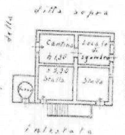 Trattasi di una unità abitativa risulta così composta: quattro vani adibiti al piano terra ad uso stalla, cantina e sgombero; cucina e altri tre vani al primo piano e al piano sottotetto troviamo una soffitta.