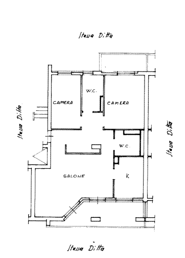 L'immobile è posto al piano terzo, ed è cosi composto: salone, due camere da letto, W.c., cucina e due balconi. Troviamo inoltre una cantina posta al piano seminterrato di mq. 4,60.