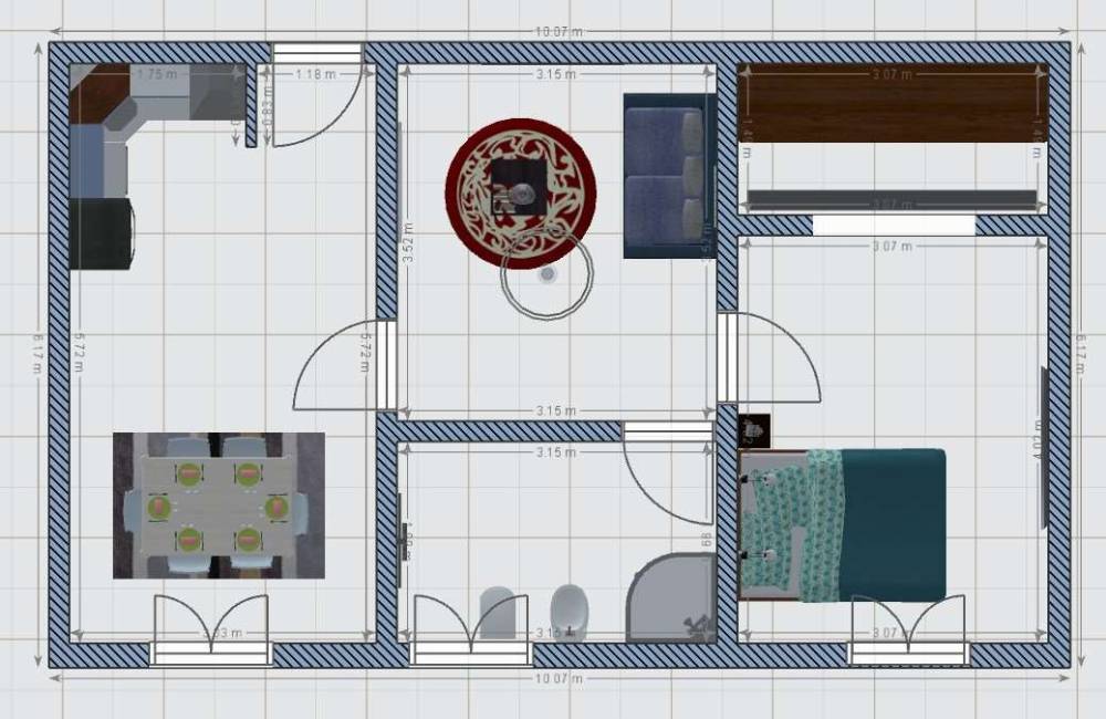 E' così composto: soggiorno con angolo cottura, disimpegno, 1 camera da letto, zona studio e bagno. L'appartamento necessita di ristrutturazione completa.