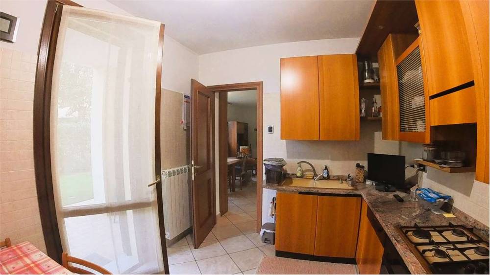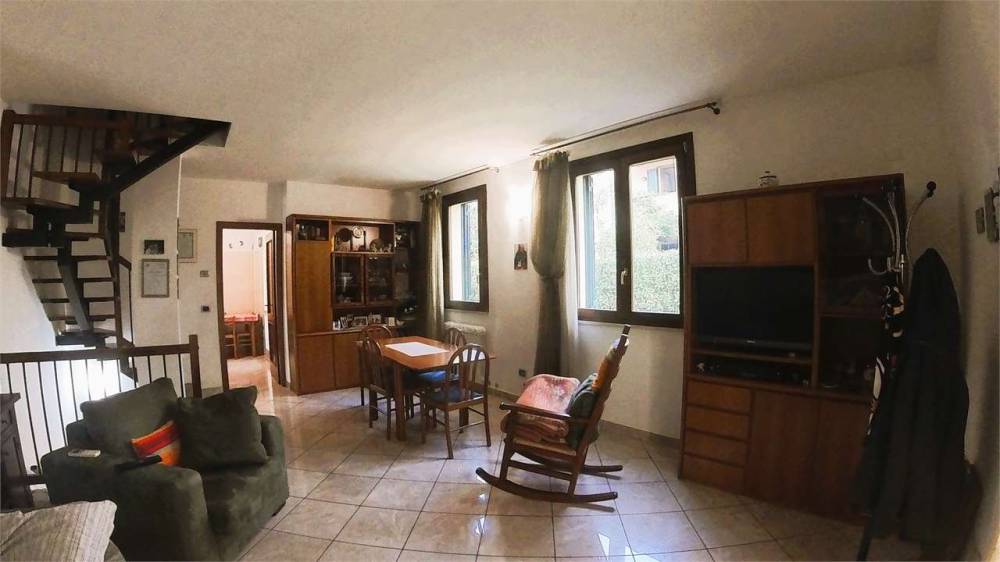Così composto: soggiorno, cucina abitabile (entrambi dotati di accesso diretto al giardino), disimpegno, 2 camere da letto, bagno, sottotetto attualmente al grezzo, già predisposto per essere trasformato in terza camera, locale hobby, zona studio o palestra, a seconda delle esigenze; l'immobile dispone inoltre di un ampio piano seminterrato con garage doppio di oltre 50 mq, perfetto per due auto e ulteriore spazio di deposito, oltre ad una comoda lavanderia/2° bagno.