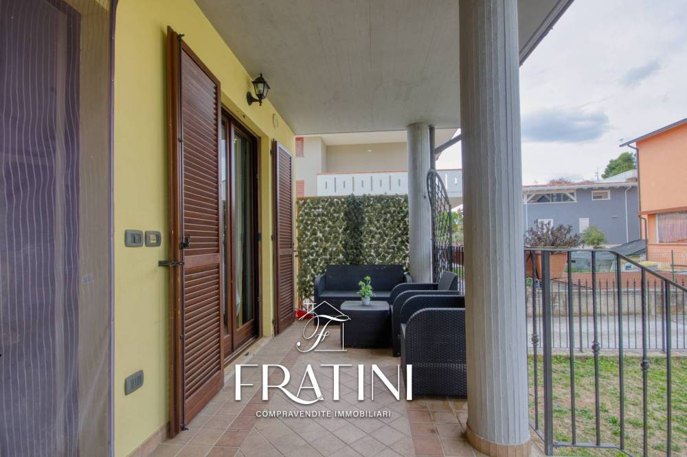 Esternamente, si trova una veranda coperta di circa 15 mq che conduce, tramite una piccola scalinata, al giardino privato recintato e dotato di cancelletto daccesso e impianto di irrigazione.