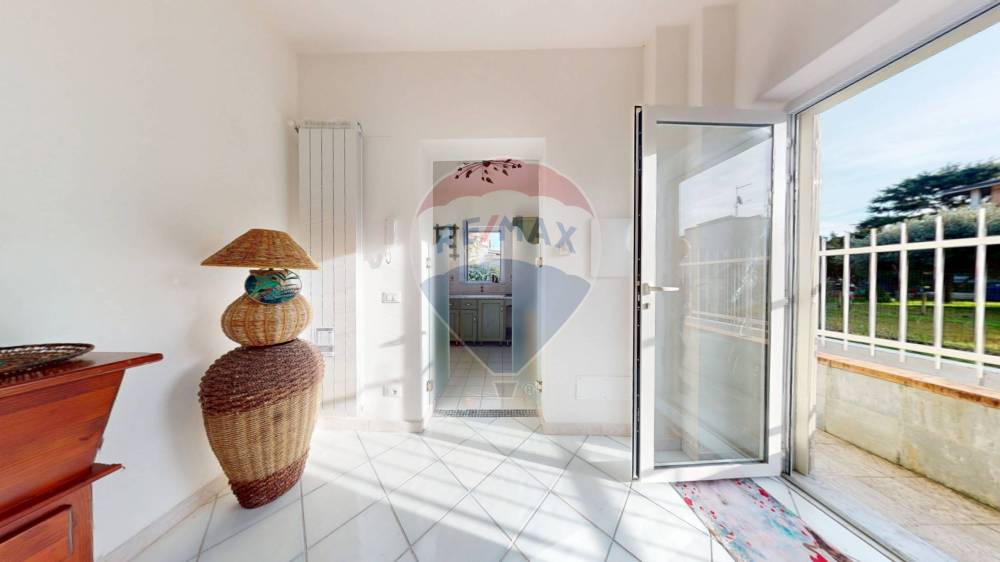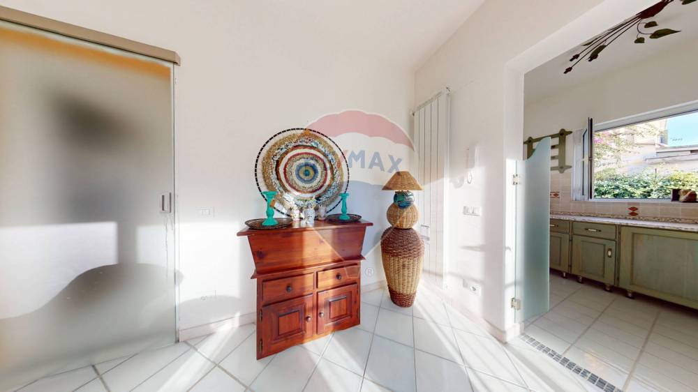 All'ingresso, un ampio portico di quasi 40mq accoglie gli ospiti e permette di godere del clima mite della zona anche all'aperto.