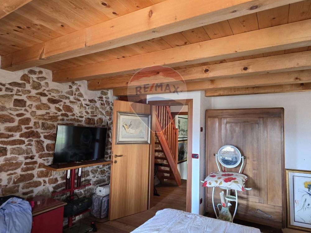 Allesterno completa la proprietà un posto auto scoperto. Le porte di accesso al fabbricato sono dotate di tettoie con copertura a "scandole", classico e ora raro metodo di isolamento dei tetti.
