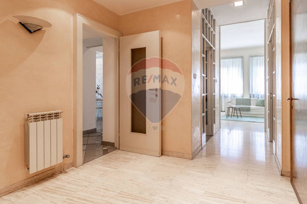 L'appartamento si trova al secondo piano, servito da ascensore, e si sviluppa su tre locali con doppi servizi e doppi balconi. Inserito in uno stabile degli anni 60, si distingue per gli spazi generosi e i soffitti alti, caratteristiche che donano respiro, luce e grande possibilità di personalizzazione. Grazie all'ampia metratura, è possibile ricavare con facilità anche una terza camera da letto o uno studio.