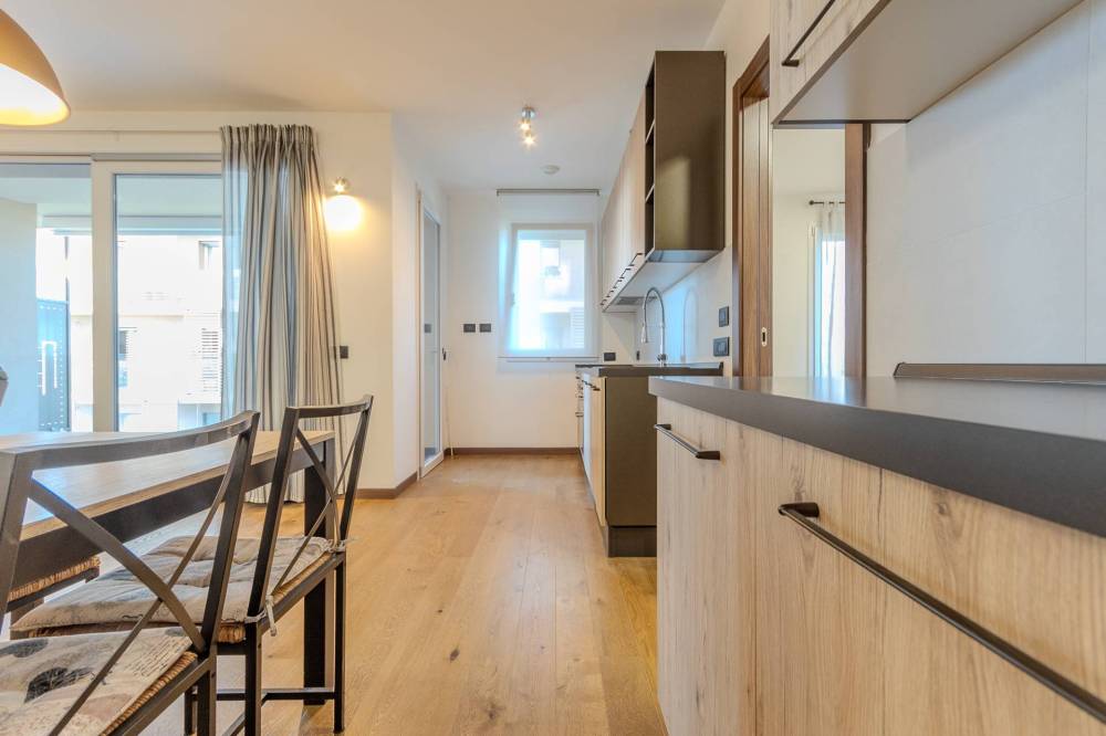 Un balcone perimetrale circonda lappartamento, offrendo continuità agli spazi e una piacevole vista panoramica.
