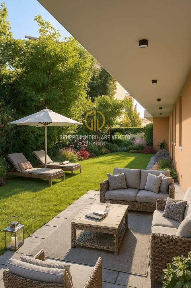 TREVISO A un chilometro dalle mura nord in una tranquilla zona residenziale, proponiamo appartamento al piano terra in un residence di nuova costruzione dal design moderno, caratterizzato da finiture di alto livello.