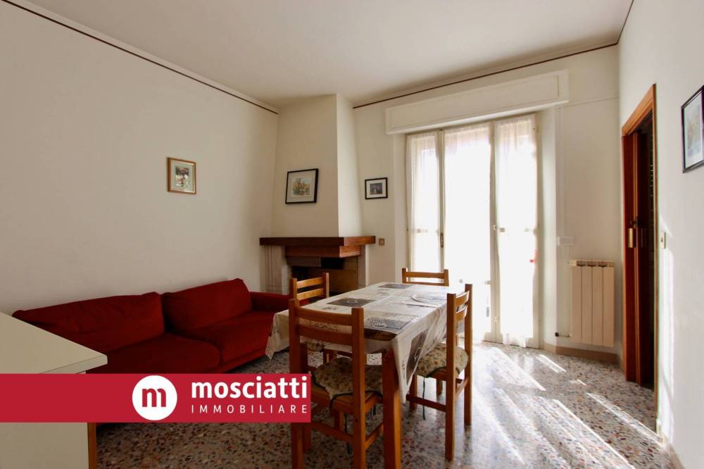 L'abitazione di mq. 90 circa, è composta da: ingresso, ampio soggiorno, cucinino, tinello con camino e accesso al balcone, disimpegno zona notte, con due camere e bagno finestrato.