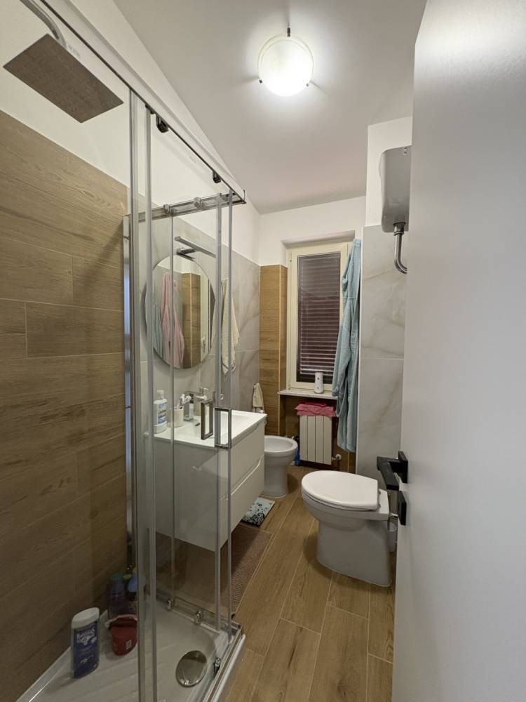 Fara in Sabina, località Talocci, proponiamo in vendita un appartamento/ attico con entrata indipendente. L'immobile elegantemente ristrutturato in chiave moderna, è molto luminoso grazie alla tripla esposizione con affaccio panoramico e suggestivo sulle verdi colline della Sabina. La distribuzione interna è molto confortevole, entrando troviamo un ampio soggiorno con angolo cottura e doppia finestra, disimpegno, due camere da letto doppie, due bagni entrambi finestrati (uno con doccia ed uno con vasca), un comodo ripostiglio; tutto il perimetro della casa è circondato da un balcone che nella parte antistante si apre in un comodo spazio (terrazzo) dove si può godere della vista e passare ore di relax con amici e parenti. Termoautonomo, condizionatore, stufa a pallet. €125.000