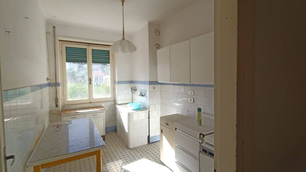 Sanremo, bilocale con cucina separata abitabile e ampio terrazzo, esposto a sud-ovest, soleggiatissimo e silenzioso per affaccio non su strada, vista aperta, mq.58, completamente da ristrutturare, composto da ingresso-corridoio, armadio a muro capiente come un grande ripostiglio, soggiorno, cucina abitabile, camera da letto, bagno con finestrino sul cavedio, completa la proprietà una cantina. Ascensore, complesso condominiale ben tenuto e relative spese annuali di circa €400,00. Situato alla fine di Via Martiri della Libertà, con tutti i servizi sotto casa, posta, farmacia e supermercato, studi medici... Un appartamento ottimo da investimento ma anche da residenza.