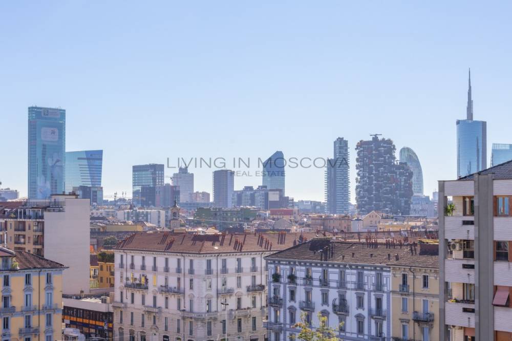 L’ingresso si apre su un ampio disimpegno che introduce alla zona living open space con primo balcone, con splendida vista panoramica sullo skyline di Porta Nuova.