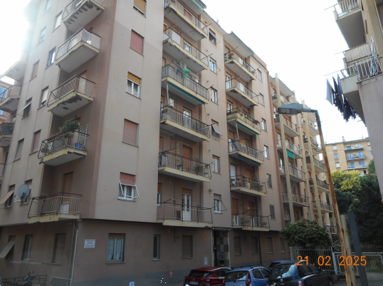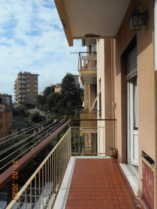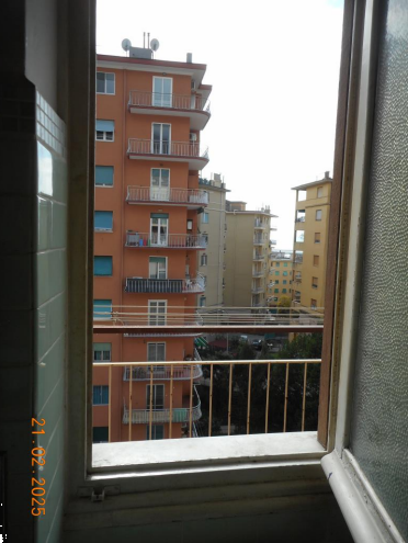 Appartamento ubicato in Genova via Jacopo Bonfadio 10/23, posto al quinto piano, costituito da ingresso, cucina, bagno, due camere, ripostiglio e 2 poggioli.