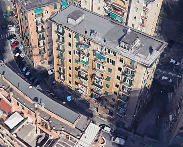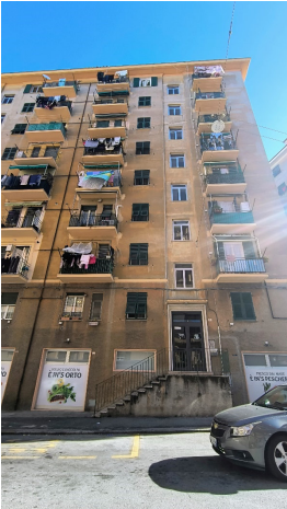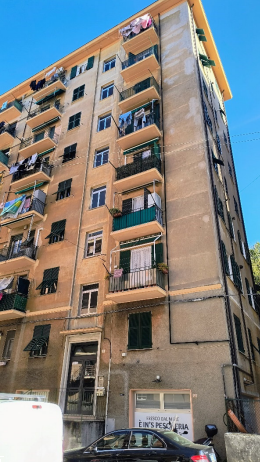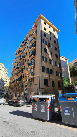 Appartamento edificio 9C, interno 14, piano 7 nel quartiere di Sampierdarena, al settimo piano di un edificio condominiale composto da piano terra e otto piani fuori terra, con copertura piana.