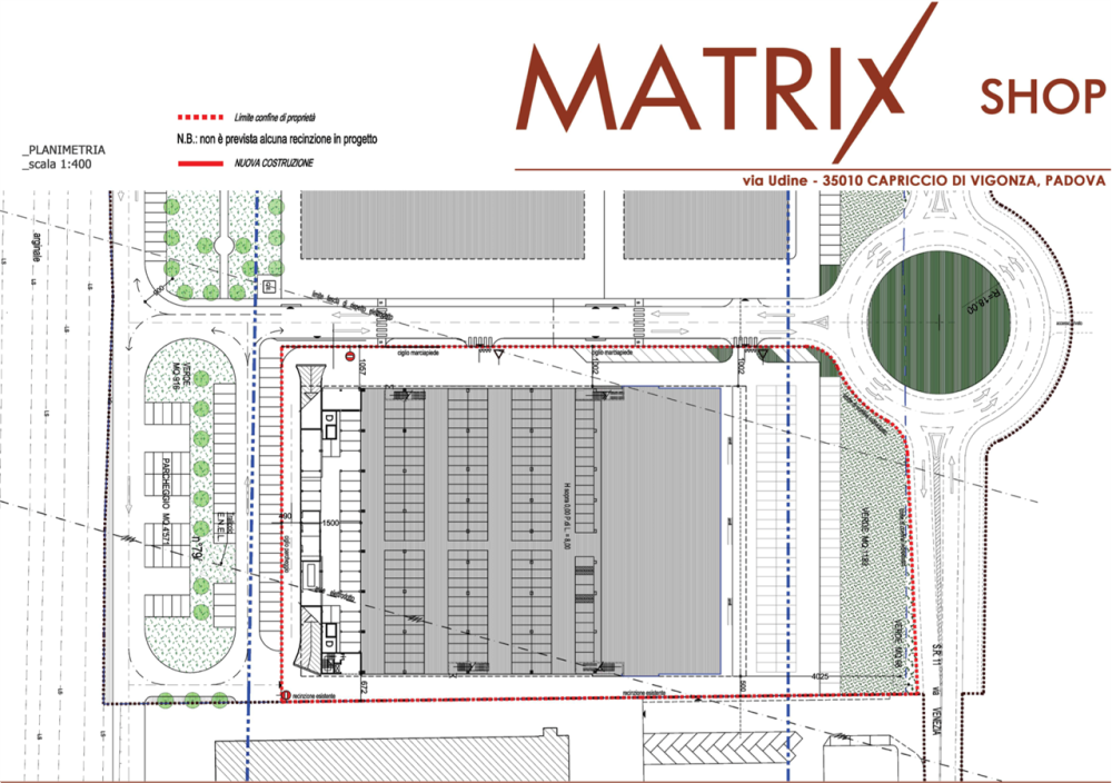 Complesso commerciale di 12.427 metri quadri, composto da due piani fuori terra e dotato di ampio parcheggio e posti auto coperti interni accessibili da via Udine, Vigonza (PD). Ogni piano fuori terra ha una superficie di circa 7.600 mq, sui quali sono distribuiti i vari locali, al piano terra circa 2.200 mq sono a carattere commerciale ed i restanti sono destinati a parcheggio coperto, mentre il primo piano è interamente destinato a spazio commerciale, ovvero negozi e supermercato. Sulla copertura piana dell'edificio sono installati dei pannelli fotovoltaici per la produzione di energia elettrica da fonte solare.