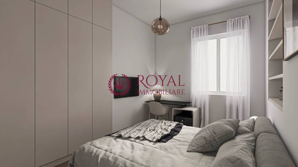 La zona notte comprende due camere da letto ben distribuite e un bagno finestrato, ampio e dal design contemporaneo.