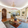 Linterno dellabitazione, caratterizzato da finiture di altissimo pregio, si apre su un ingresso di rappresentanza accessibile tramite una scala gemella, tipica in residenze nobiliari. Il triplo salone, la sala da pranzo annessa, e lo studio con camino antico in pietra unica e pareti rivestite in boiserie pregiata, creano unatmosfera raffinata ed accogliente. Le finestre ad arco e i soffitti alti 335 cm contribuiscono a donare luminosità e spaziosità agli ambienti. La cucina abitabile, completa di locali di servizio, è pensata per un utilizzo funzionale senza rinunciare allestetica.