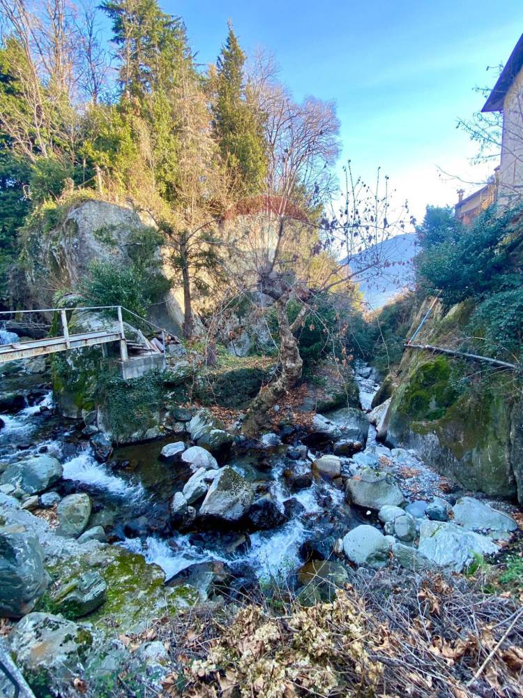 L'immobile si divide in due piani, ognuno di loro composto da due camere, il tutto accompagnato dall'area verde esterna sul torrente.
