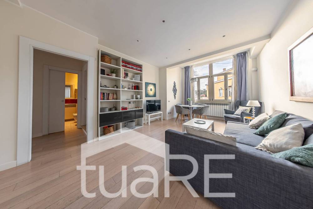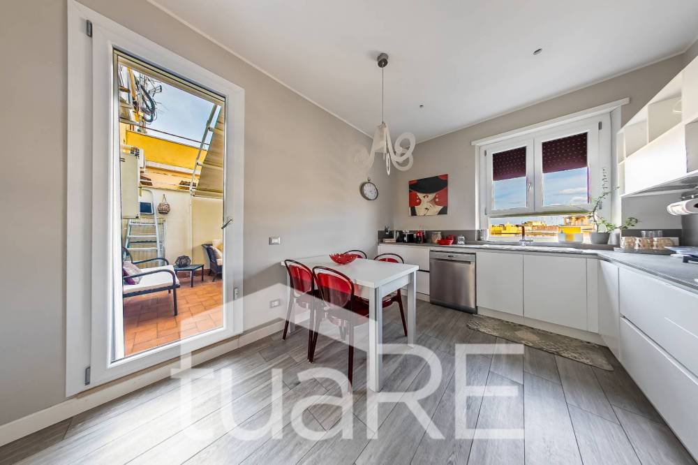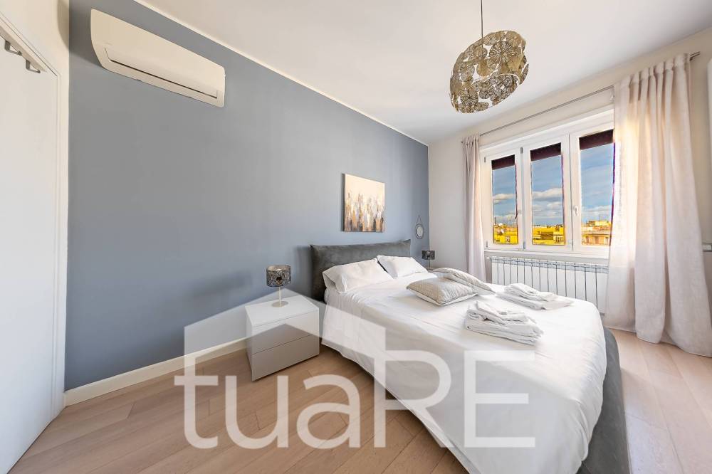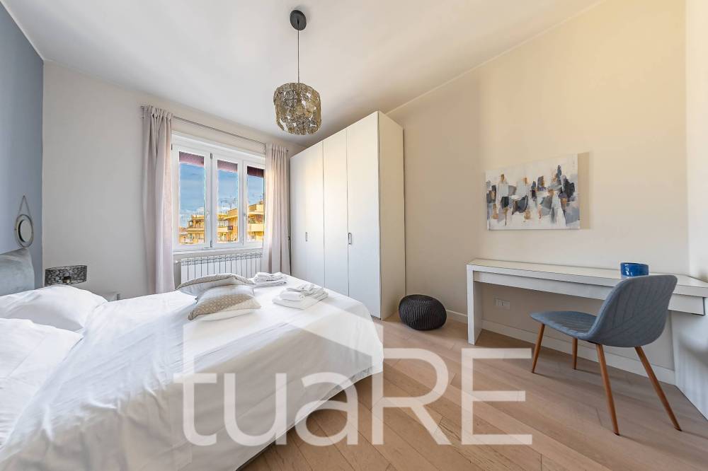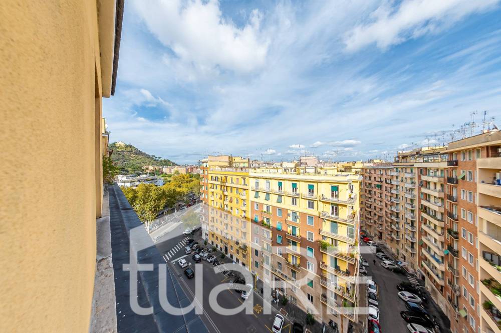 L'immobile si trova nel rinomato quartiere Prati, precisamente in via della Giuliana a due passi dal Vaticano e da tutti i servizi di zona. Posto ad un 9° ed ultimo piano di uno stabile signorile con ascensore che arriva fino al piano 8°, l'appartamento risulta molto luminoso grazie alla doppia esposizione ed agli affacci aperti. Internamente si presenta completamente e finemente ristrutturato con pavimenti in parquet di rovere. Il valore aggiunto è sicuramente la presenza del terrazzo vivibile a cui si accede tramite la cucina che essendo molto spaziosa offre la possibilità di poterci ricavare la 3° camera matrimoniale realizzando una cucina a vista nel salone anch'esso molto spazioso. L'immobile risulta una proprietà di alta rappresentanza, livello e unicità per la zona. A completare la proprietà troviamo una comoda cantina. Tutte le informazioni, misure e planimetrie riportate nel presente annuncio sono meramente indicative e non costituiscono in alcun modo elementi contrattuali.