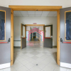 Lingresso principale introduce in un atrio di rappresentanza di 12 mq, collegato ad una sala dattesa di 14,20 mq, ad un ufficio di accettazione di 17,49 mq con adiacente ripostiglio di 7,5 mq e ad un secondo ingresso di 11,92 mq.