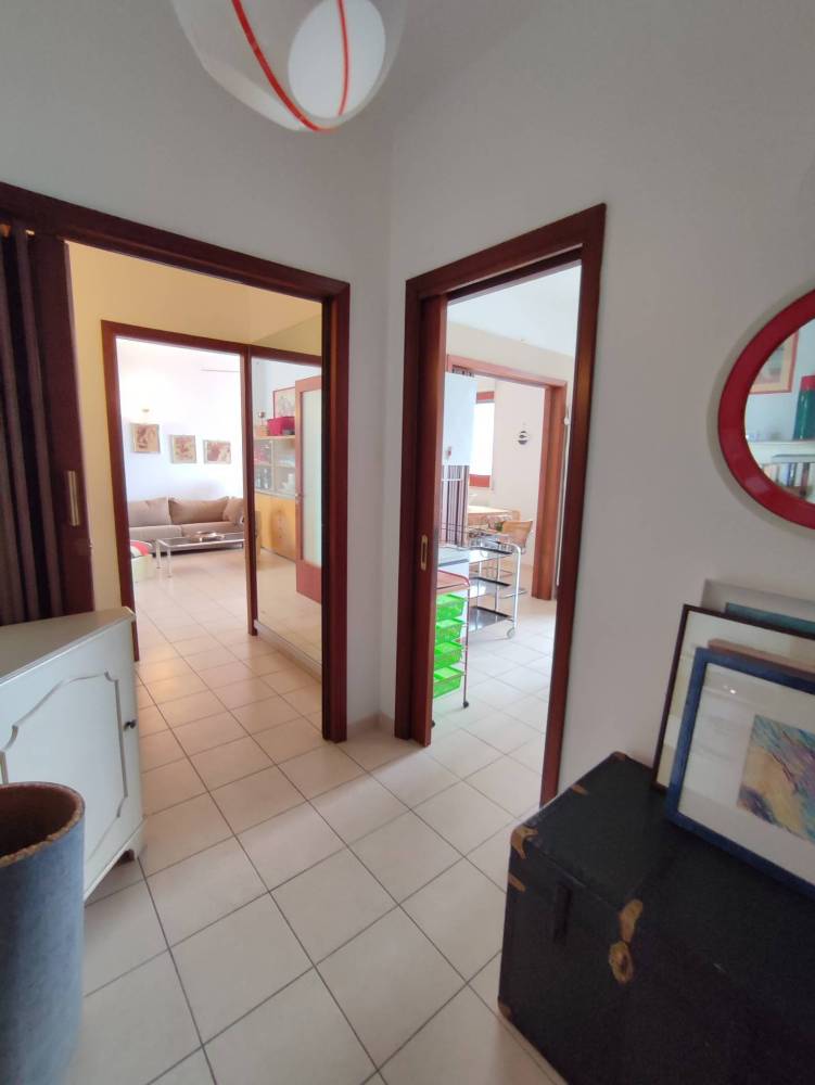 L'immobile si dispone su una metratura di circa 100 mq ed è composto da ingresso su disimpegno, cucina abitabile con balcone, arricchito da una straordinaria vista mare e sul centro storico, salone con balcone, due camere da letto matrimoniali di cui una con bagno privato e balcone, secondo bagno disimpegnato.