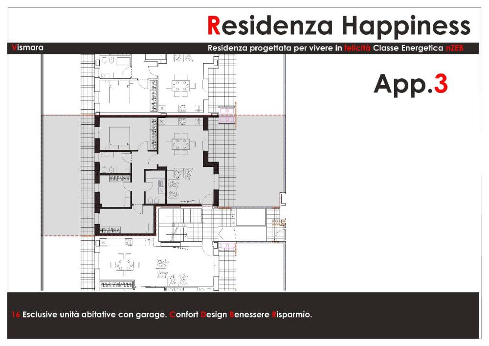 Si accettano prenotazioni per il nuovissimo complesso residenziale (RESIDENZA HAPPINESS) composto da 8 appartamenti moderni, eleganti e confortevoli con prestazioni energetiche di alto livello (Classe energetica nZEB), da mq 90 a mq 100, completano le proprietà giardini esclusivi e/o terrazzi abitabili oltre a GARAGE esclusivi a scelta da 22 mq a 29 mq; dotato di tutti i più moderni impianti, per ottimizzare il risparmio energetico, con riscaldamento a pavimento o pompa di calore, pannelli fotovoltaici privati e ventilazione meccanica controllata (VMC) per garantire il vostro benessere all'interno dell'alloggio! Consegna prevista MARZO 2027.