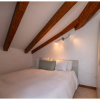 L'alloggio si trova al quarto ed ultimo piano di un condominio anni '50 in buone condizioni generali. Varcata la soglia di ingresso si accede al soggiorno con cucina a vista. Proseguendo si trova la camera da letto matrimoniale e il bagno.