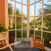 La ricchezza delle finiture, selezionate in stile e con attenzione, i mille particolari costruttivi nei colori caldi, nei fiori e nelle finestre che continuamente rimandano al giardino ed affacciano sui vialetti di pietra bianca, impossibile non innamorarsi di Villa Indaco.