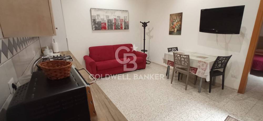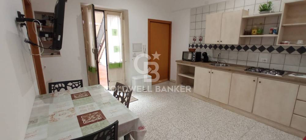 Un cortile comune fa da sfondo alla seconda unità immobiliare del piano terra costituita da due vani che fungono da tinello con cucina a vista, camera matrimoniale oversize e bagnetto.